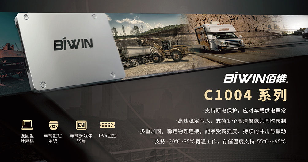 在復雜的運輸環(huán)境中,震動大、溫差大、電壓不穩(wěn)、突發(fā)斷電、存儲空間受限都是車載監(jiān)控存儲器必須一一克服的難題,佰維BIWIN針對這些痛點推出的C1004系列SSD,便充分滿足了物流車載監(jiān)控的實際應用需求。