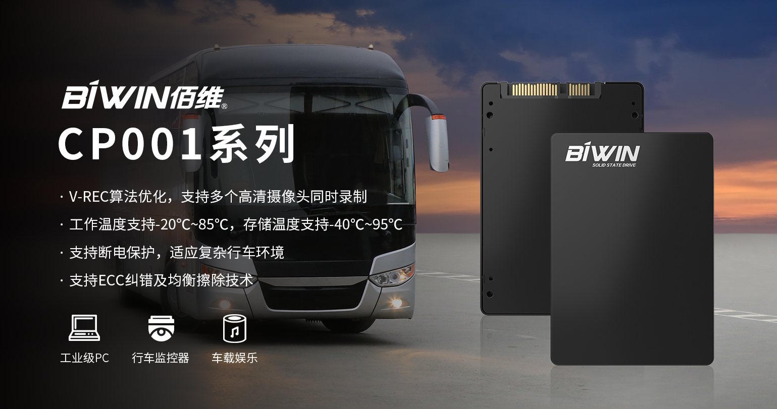 行車監控器、車載娛樂等車載應用已經十分普遍,針對此類大量數據、長時間的讀寫需求,佰維CP001系列SSD通過V-REC算法優化進行專項的固件調校,可保持車載SSD持續不間斷地寫入數據,從而支持多個高清攝像頭同時錄制。支持-20℃~+85℃寬溫工作,無懼極端溫度挑戰,廣泛應用于大巴車、觀光車及危險品運輸車等汽車車載應用中。