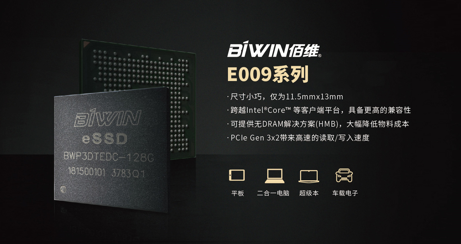 著眼未來,智能汽車將配備大量的傳感器(比如GPS接收器、激光雷達、超聲波傳感器,以及高清攝像頭等),對數據存儲和處理能力提出了更高的要求,佰維E009系列BGA PCIe SSD作為新一代嵌入式存儲芯片,實測最高讀取速度可達1750MB/s,優異的讀寫性能可充分滿足車載應用對數據高速存儲的需求,且具有高可靠性、小尺寸和低功耗等優勢,完美助力車載計算設備快速完成數據分析,讓用戶享受到更加快捷的數據存儲體驗。