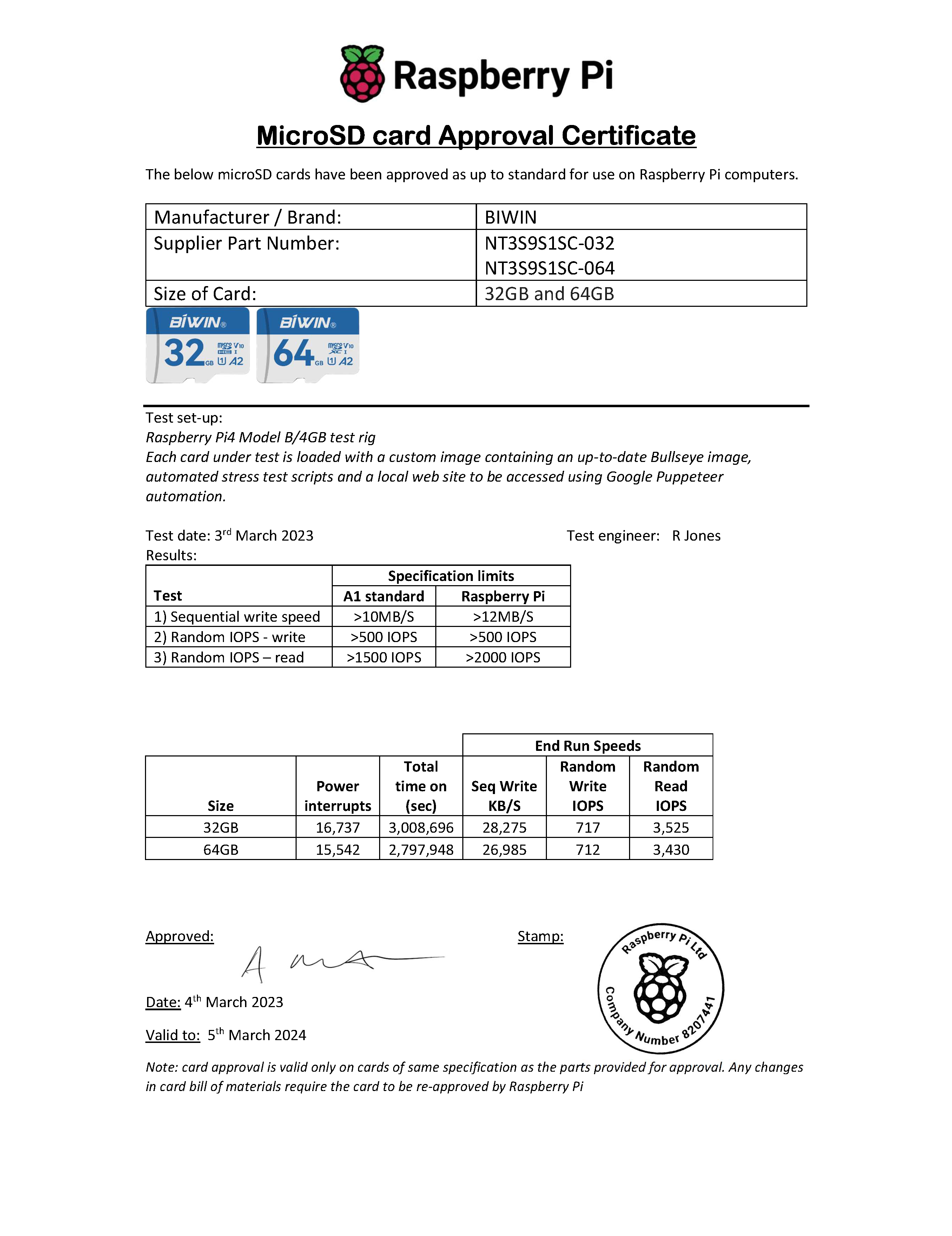 TF200系列microSD卡在Raspberry Pi 4 Model B/4GB平臺(tái)上經(jīng)過了一系列嚴(yán)苛的測(cè)試,包括每塊待測(cè)板卡均加載自定義的圖像(含最新的Bullseye圖像),自動(dòng)壓力測(cè)試腳本,以及可使用Google Puppeteer自動(dòng)進(jìn)行訪問的本地網(wǎng)站等測(cè)試內(nèi)容。經(jīng)過超過15000次斷電測(cè)試和超過270萬秒的長(zhǎng)時(shí)間運(yùn)行,產(chǎn)品連續(xù)寫入速度>26MB/s,隨機(jī)寫入速度高達(dá)717 IOPS,隨機(jī)讀取速度高達(dá)3525 IOPS,符合樹莓派測(cè)試指標(biāo)要求,護(hù)航樹莓派高效穩(wěn)定運(yùn)行。
