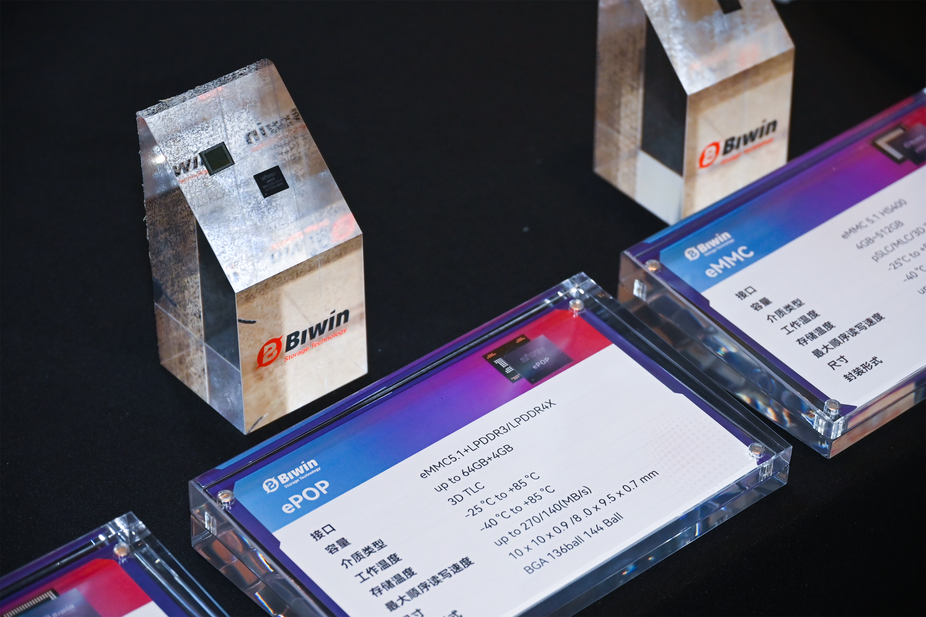 佰維eMCP4x、ePOP4x基于多層疊Die、超薄Die、多芯片異構集成等封裝工藝,集成了eMMC5.1和LPDDR4x,數(shù)據(jù)傳輸速率高達4266Mbps,且采用先進低功耗設計和優(yōu)化電源管理技術,確保設備快速響應多種傳感器數(shù)據(jù)請求,處理多任務時保持流暢運行。其中,ePOP4x容量達32GB+2GB(將推出64G+2/3/4GB,賦能AR、VR等設備AI應用),尺寸小至8×9.5×0.7(mm),并通過直接貼裝在SoC芯片上,助力智能手表輕薄設計。目前,ePOP系列產(chǎn)品已廣泛應用全球知名企業(yè)高端穿戴設備中,并獲評“全球電子成就獎年度存儲器”、“最佳存儲芯片”、“‘中國芯’關鍵基礎支撐優(yōu)秀產(chǎn)品”。