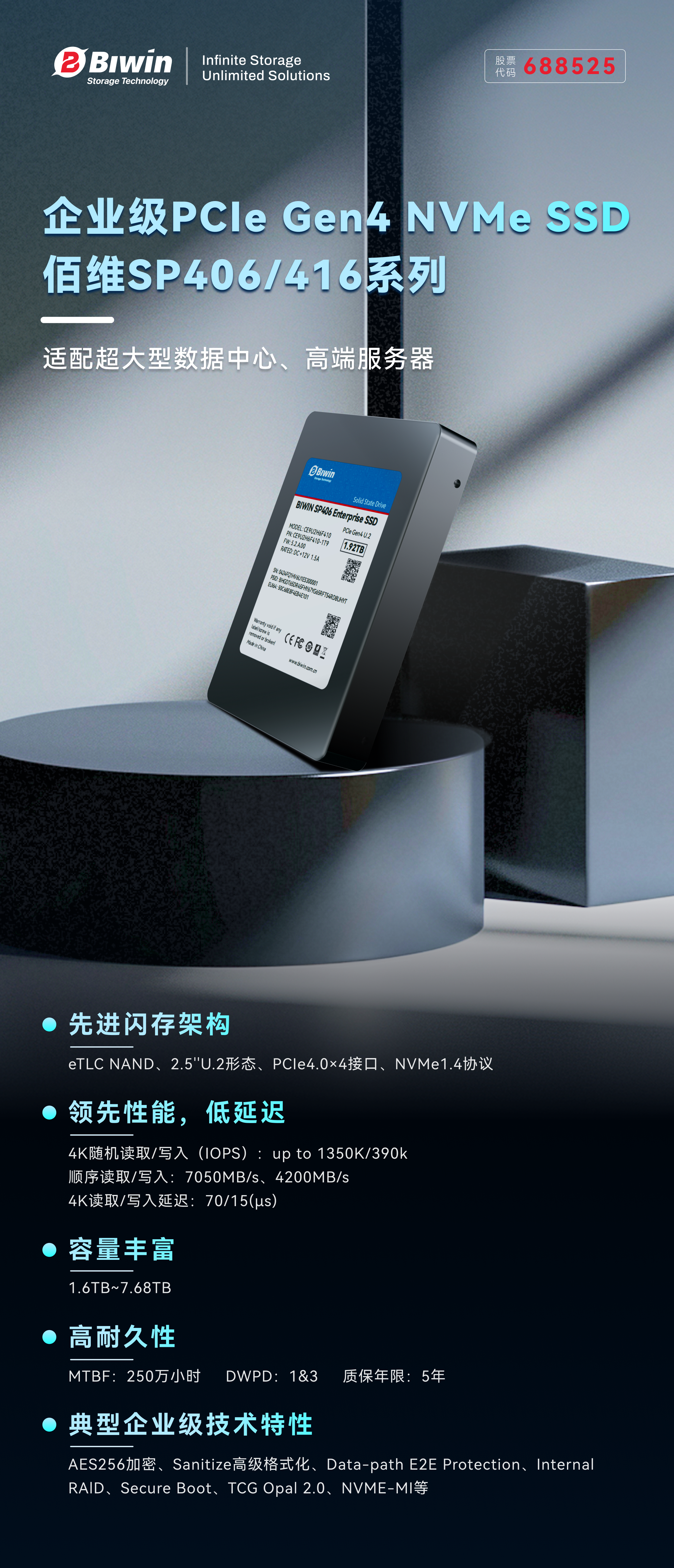 佰維SP406/416系列企業級PCIe4.0 SSD
