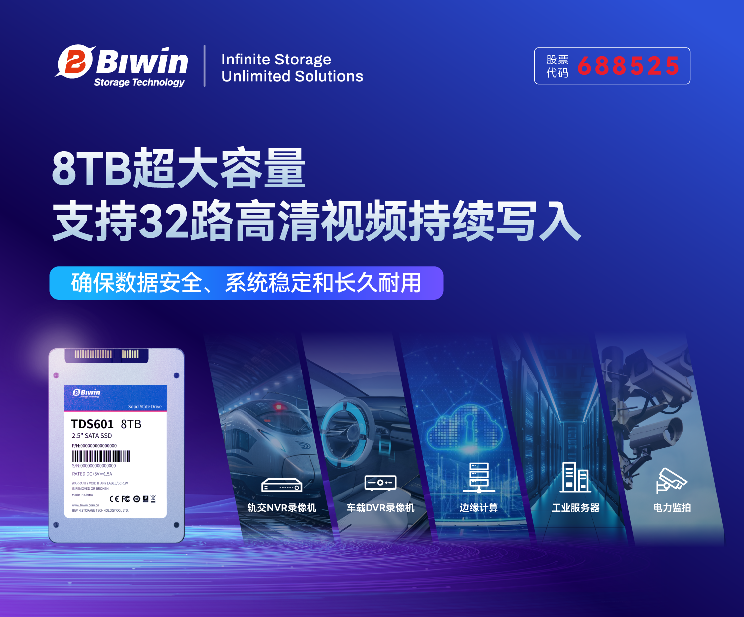 在智慧交通、智慧城市快速普及下,視頻監控系統正朝著高清化、多路化和智能化方向加速演進,存儲設備的性能、穩定性和可靠性已成為保障系統高效運行的關鍵因素。佰維存儲正式推出全新一代工業級SSD產品——TDS600系列,系列產品以8TB超大容量、媲美企業級的穩態性能、全方位高可靠性設計和全國產化BOM為核心亮點,全面滿足軌交、車載、電力、安防及邊緣計算等關鍵領域的嚴苛需求。