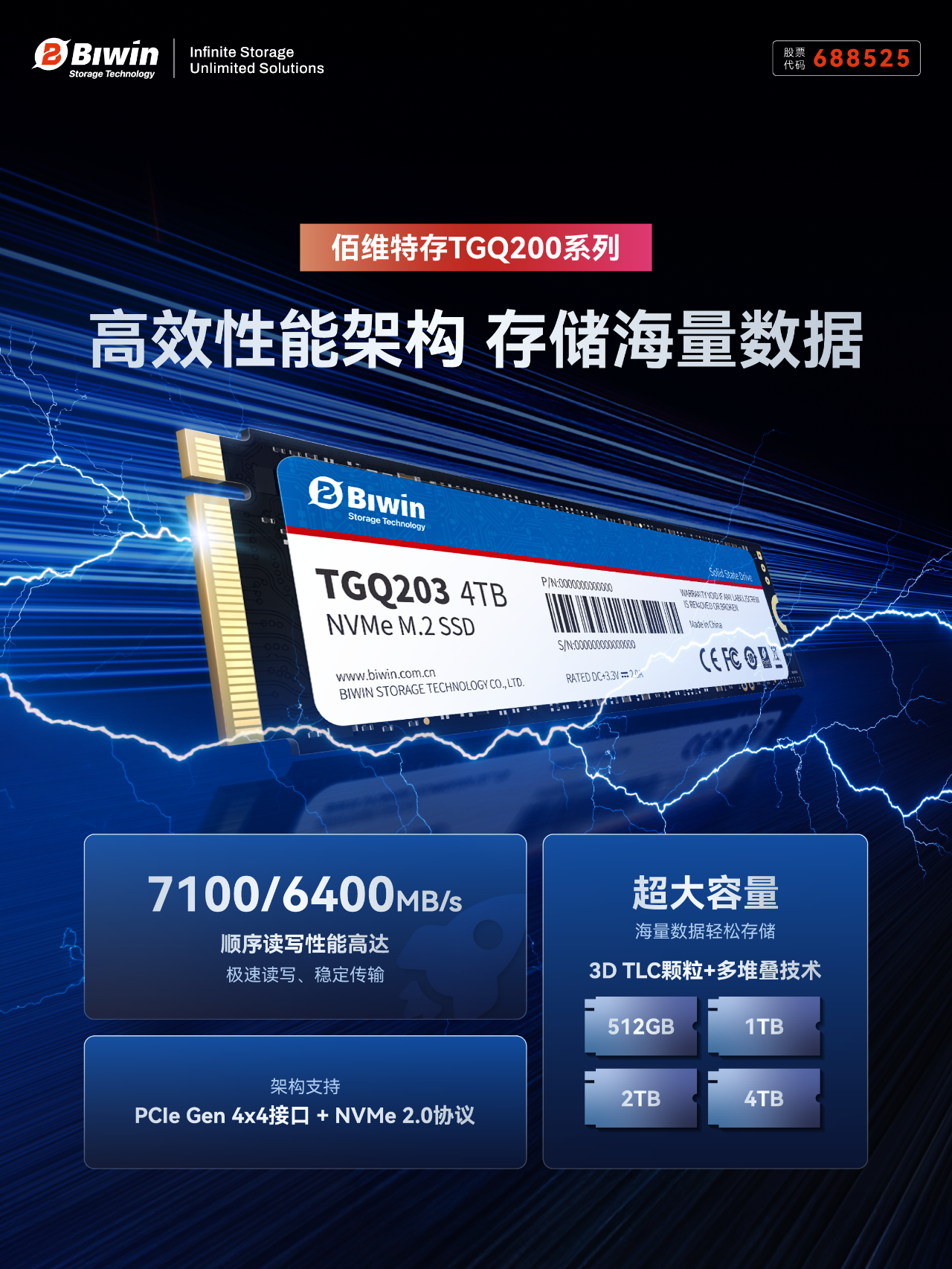 -容量覆蓋 512GB-4TB 全檔位,滿足高容量需求應用;